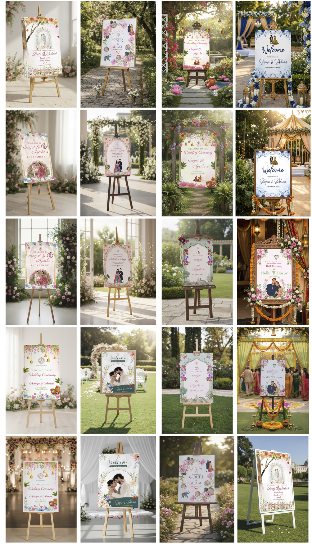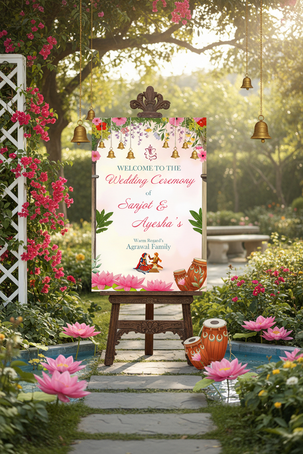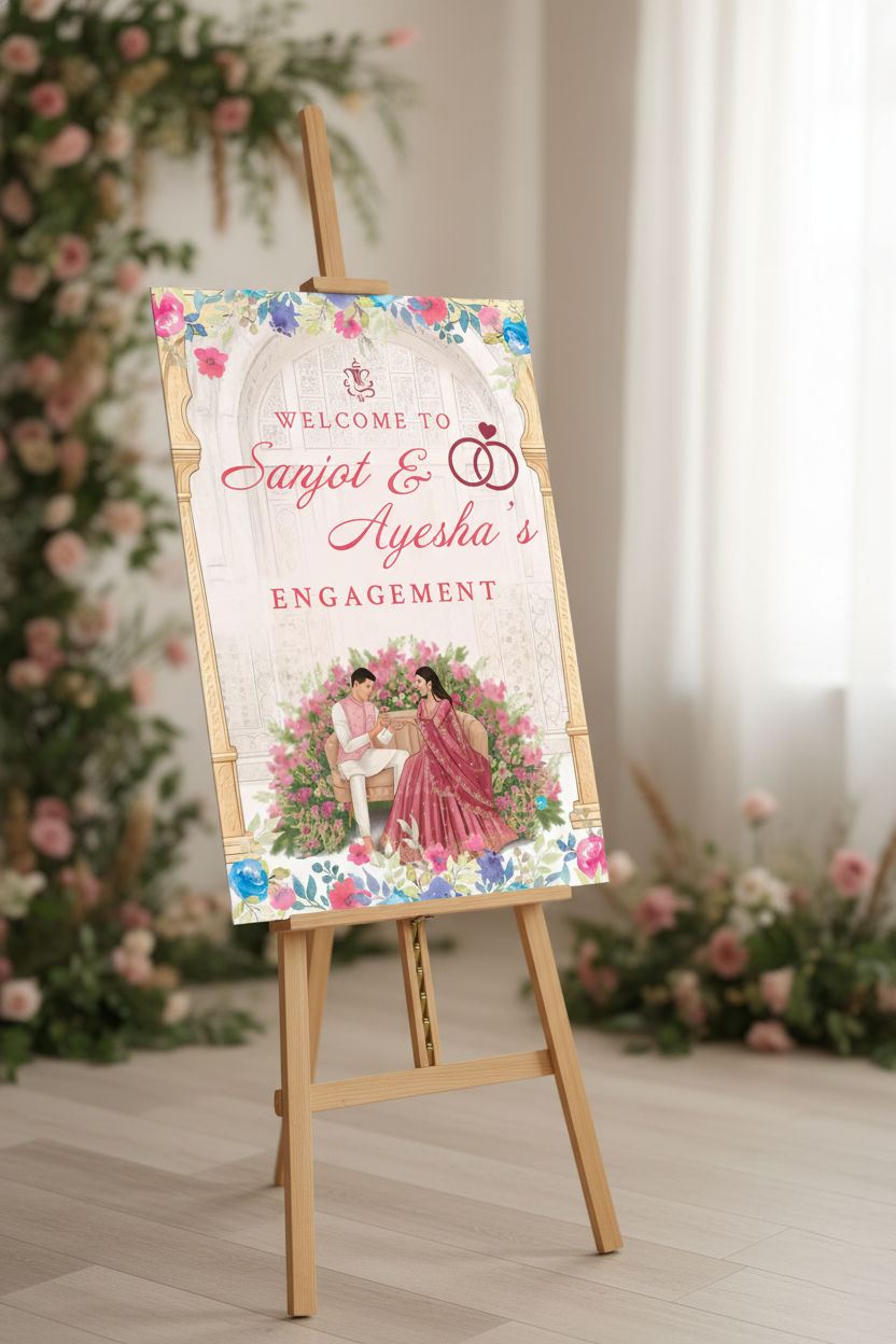 Floral Haldi Ceremony Welcome Sign – Editable 3×2 Illustrator Template