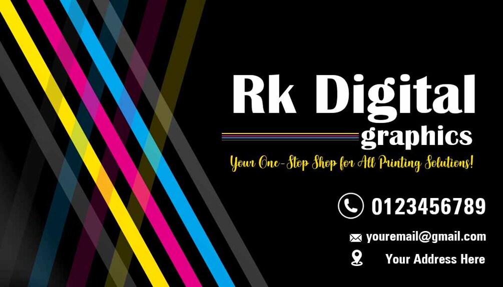 The front side features bold CMYK color accents and clean typography for your brand details. The back design showcases a vibrant creative theme with a full list of printing services—perfect for promoting your capabilities in a single glance.
